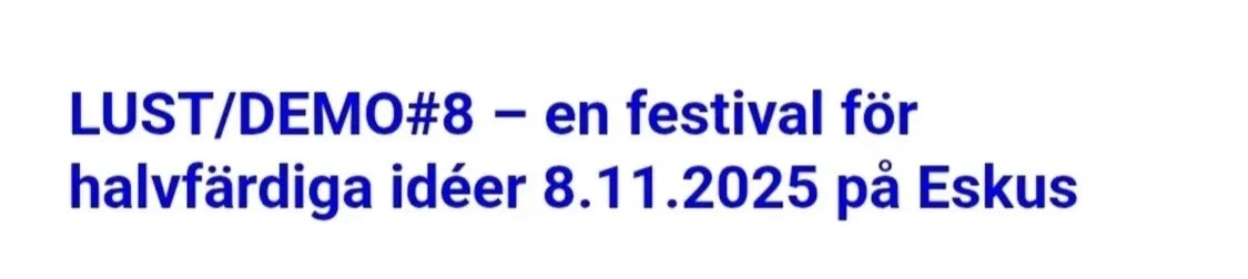 Satt på bussen 8.11 påväg mot Södervik och LUST/DEMO #8 – en minifestival för halvfärdiga idéer. Satt där ivrig, men tydligen även nervös för mitt haltande lokalsinne fick överhanden och föste av mig några hållplatser för tidigt. Fan, tänkte jag. Typiskt. I retsamt duggregn småsprang jag gatan fram i sällskap av tanken på att skämmas då jag sannolikt skulle komma för sent. Vilket jag inte gjorde, och skämmas skulle jag inte ha behövt oavsett insåg jag väl där, för stämningen var verkligen inte en av grogrund för skam. Tvärtom. Jag tycker mig ha varit på tillräckligt många gruppsammankomster för att kunna säga att den här var ovanligt avslappnad och tillåtande.